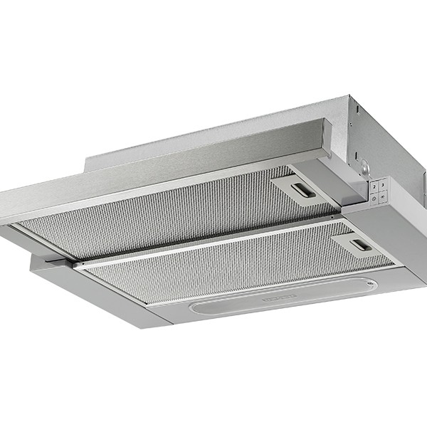 Ανοξείδωτος συρόμενος απορροφητήρας 60cm με υψηλή απορροφητικότητα και LED φωτισμό. Συνδυάζει πρακτικότητα και ανθεκτικότητα, ιδανικός για καθημερινή χρήση με χαμηλό θόρυβο και ενεργειακή κλάση C.