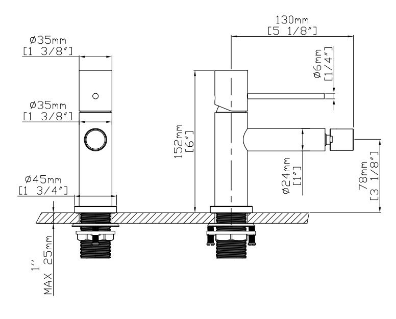 Μπαταρία μπιντέ με μηχανισμό κεραμικών δίσκων για ακριβή ρύθμιση ροής και θερμοκρασίας. Σχεδιασμένη για καθημερινή χρήση με αντοχή στον χρόνο. Περιλαμβάνει σπιράλ σύνδεσης βαρέως τύπου 35 cm για σταθερή και ασφαλή εγκατάσταση.