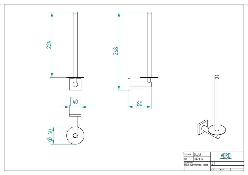 Μεγάλη εφενδρική χαρτοθήκη μπάνιου, σχεδιασμένη να χωράει δύο ρολά χαρτιού ταυτόχρονα. Πρακτική και κομψή, κρατά το χαρτί πάντα σε εύκολη πρόσβαση.