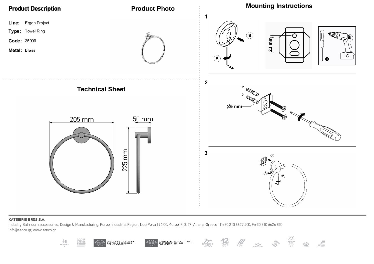 Κομψός και λειτουργικός κρίκος για πετσέτες. Κατασκευασμένος από ανθεκτικά υλικά, προσφέρει πρακτικότητα και αισθητική στον χώρο του μπάνιου.