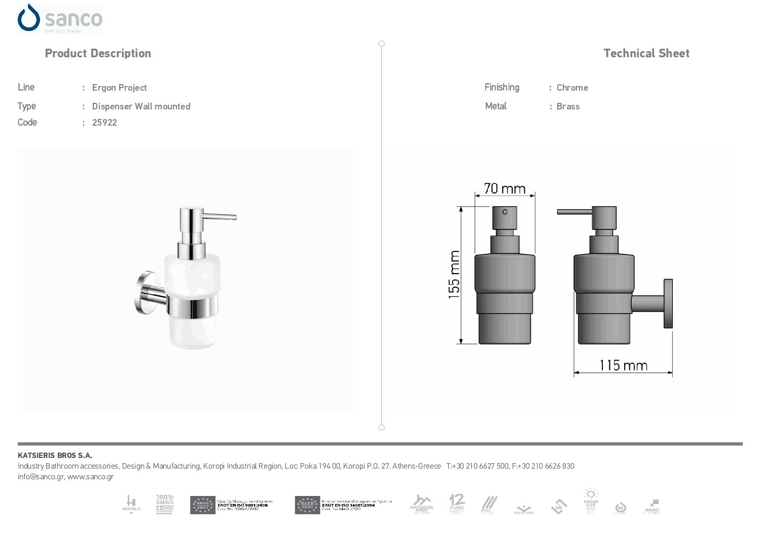 Μοντέρνος και λειτουργικός dispenser σαπουνιού για υγρό σαπούνι ή αντισηπτικό. Κατασκευασμένος από ανθεκτικά υλικά, με εύκολη επαναπλήρωση και κομψό design που ταιριάζει σε κάθε χώρο.