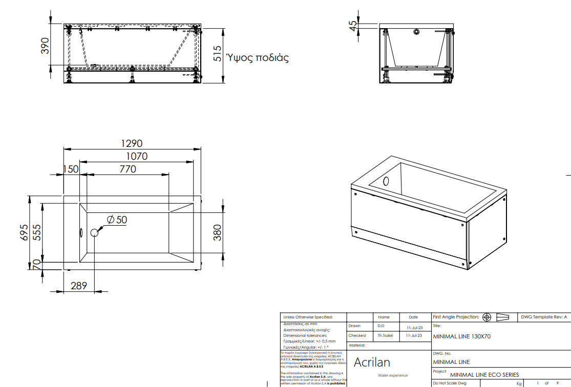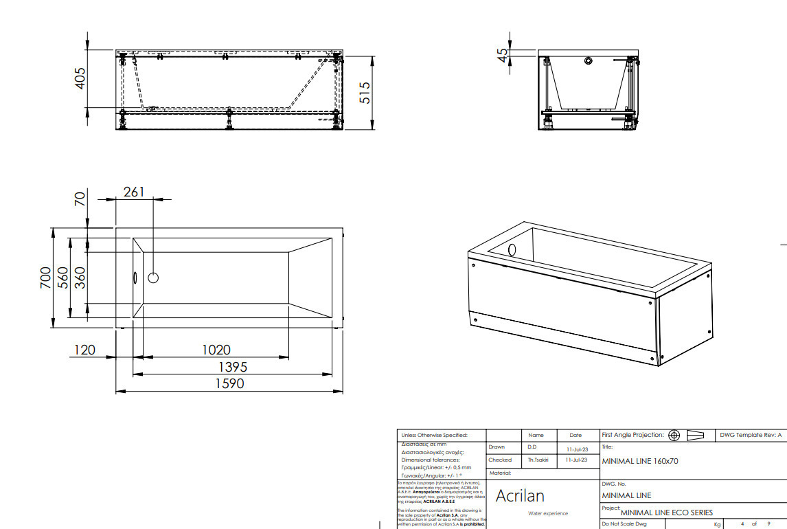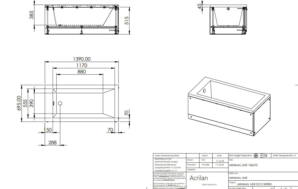 Μια προσέγγιση που συνδυάζει την άνεση με τη μίνιμαλ αισθητική, δίνοντας στο μπάνιο σας μια κομψή και πρακτική αίσθηση. Διατίθεται μπανιέρα σε πολλές διαστάσεις, για να ταιριάζει ιδανικά στον χώρο σας.