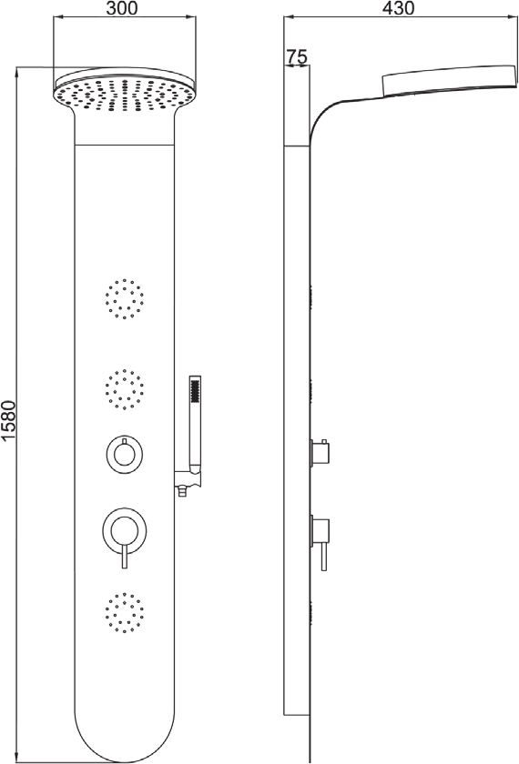 ΛΕΙΤΟΥΡΓΙΕΣ : Ντουζ κεφαλής, 3 πλευρικά ντουζ, τηλέφωνο ντούζ με σπιράλ