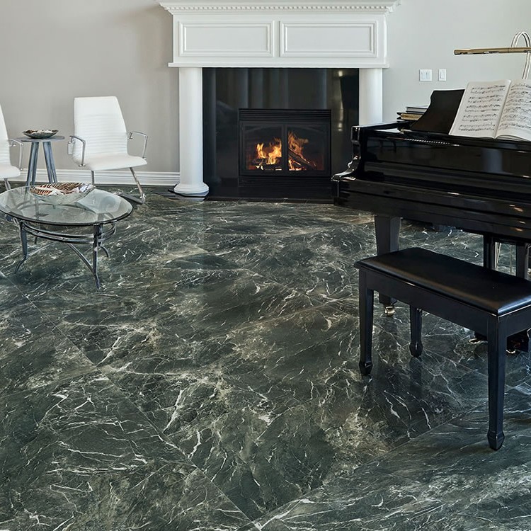 Verde Alpi 60×120 – Πλακάκι γρανίτη δαπέδου με γυαλιστερή επιφάνεια και βαθύ πράσινο φόντο εμπνευσμένο από το φυσικό μάρμαρο Verde Alpi. Οι έντονες νεράδες και η στιλπνή υφή δημιουργούν ένα εκλεπτυσμένο, τολμηρό αποτέλεσμα ιδανικό για εσωτερικούς χώρους υψηλής αισθητικής, οικιακούς ή επαγγελματικούς.