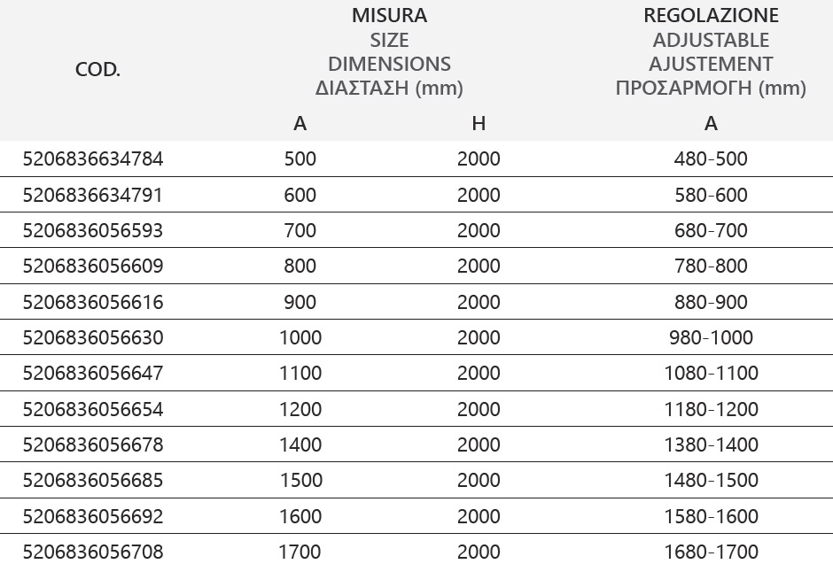 • Σταθερό διάφανο κρύσταλλο ασφαλείας πάχους 8 mm, υψηλής αντοχής